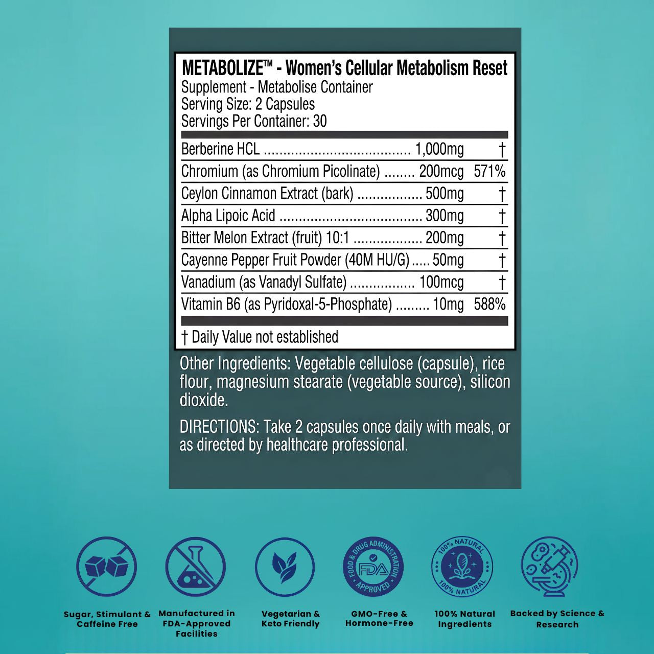 Berberine (1,000mg) and Chromium Picolinate (200mcg) help your cells respond to insulin again—so glucose goes into cells for energy, not fat storage.†