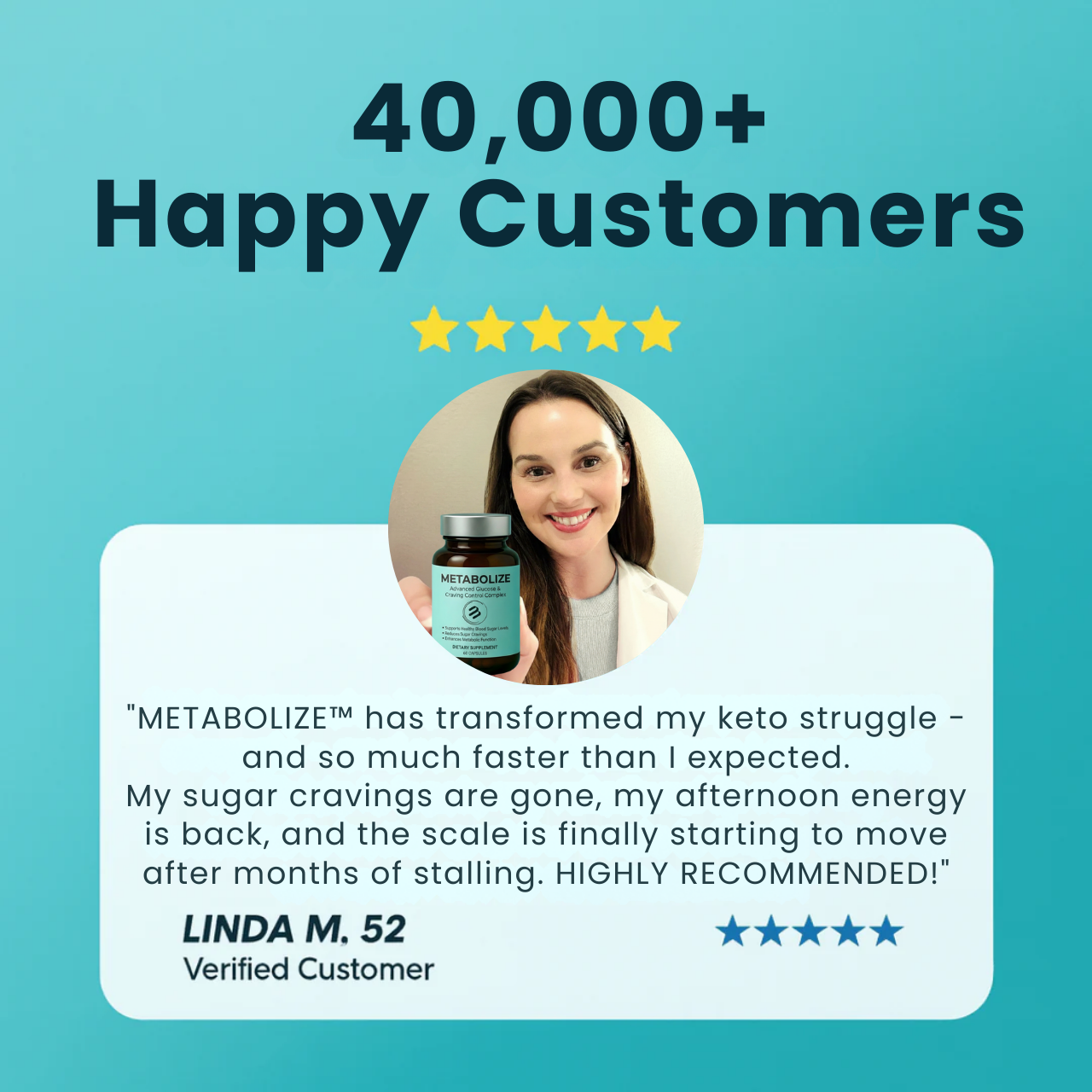 There was a constant voice in my head: "Eat. You need sugar. Go to the kitchen. Check the pantry." Even after meals, the noise never stopped. It was EXHAUSTING. Two weeks on METABOLIZE and the voice is just... gone. Silent. I can focus on work, on conversations, on LIFE—without thinking about snacks every 10 minutes.