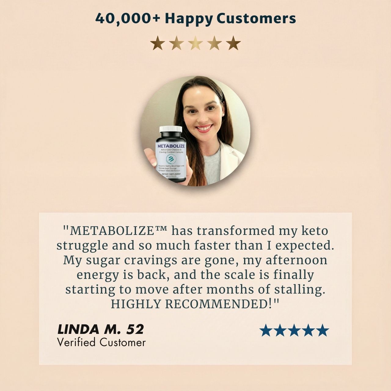 "I was eating like a bird but still looked 6 months pregnant. My doctor said it was 'insulin resistance,' not overeating. Day 10 on Metabolize: I woke up and my stomach actually felt SOFT. By Week 6, I zipped up jeans I haven't worn since my 30s. I finally feel like my body is listening to me again. It wasn't my fault after all."