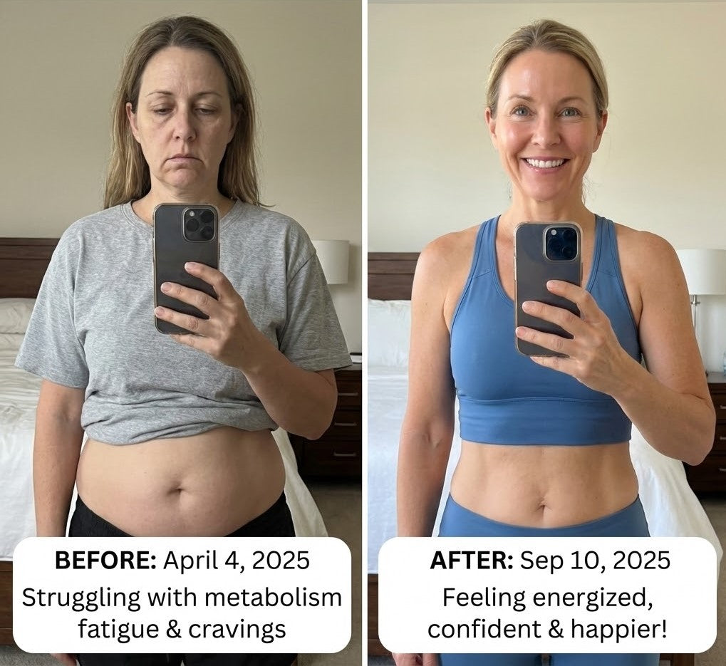I've been stuck at 168 lbs since menopause started. It didn't matter if I ate 1,200 calories or 2,000—the scale wouldn't budge. The meno-belly just kept inflating like a balloon. Six weeks on METABOLIZE and I'm down to 154. But it's not just the number on the scale—my belly is actually FLAT again. I can zip my favorite jeans without lying down on the bed first. I actually cried in the dressing room yesterday. Happy tears.